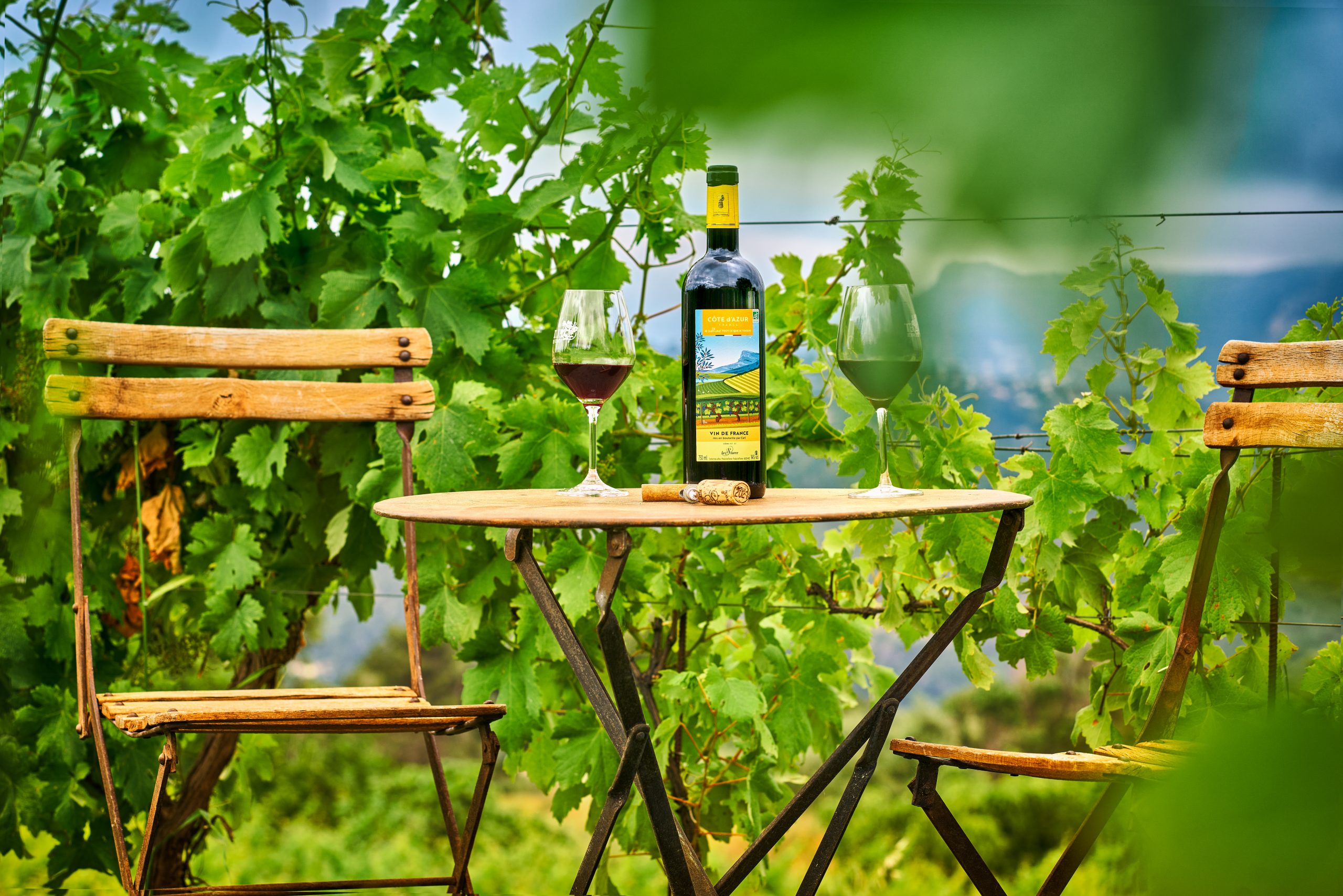 Dernière cuvée Rouge en collaboration avec le CRT FRANCE, 95% de Folle Noire et 5 % de Braquet.